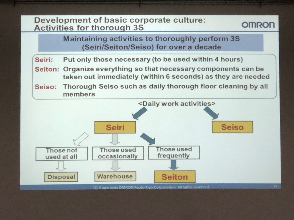 Omron have a very simple philosophy. They don’t believe in 5S, but merely 3S! they also claim that this is one of the cornerstones of their corporate culture “for over a decade”!